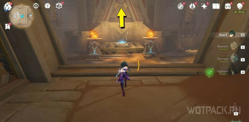 От 5 Скрижали бегите прямо по коридору, и поднимите ее у Обелиска. Вставьте все собранные предметы в него, чтобы получить сундук.