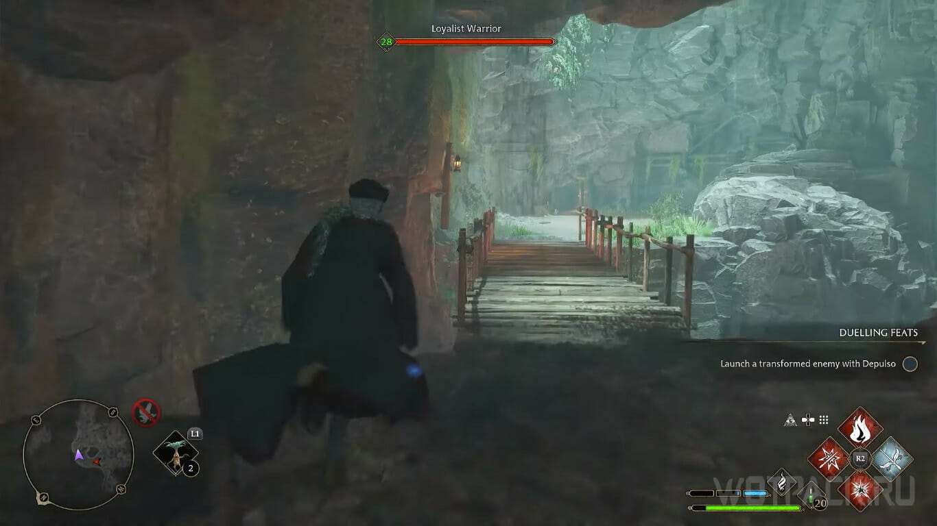 Переместитесь к точке телепортации Кабинета трансфигурации и бегите через первую дверь слева, а затем начните спускаться в подземелье.