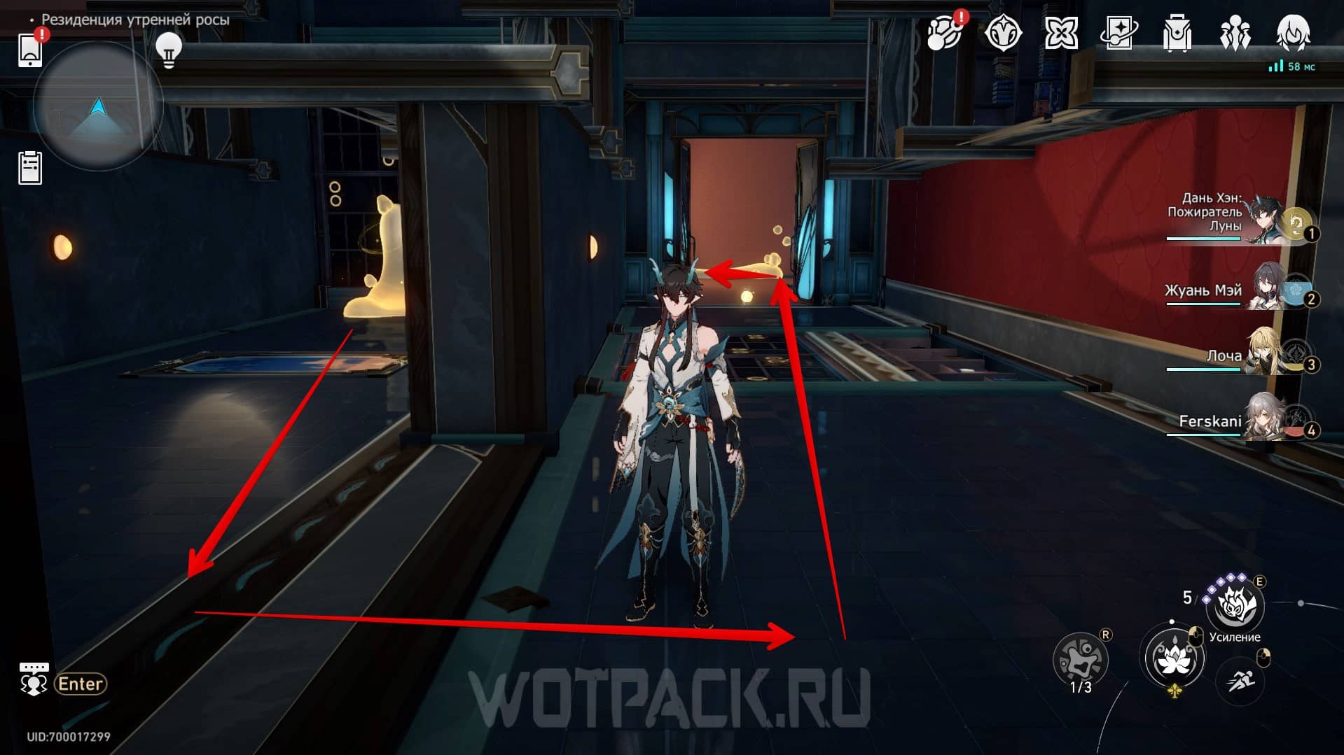 Вернитесь в самое начало ко входу в общее пространство и, как обычно, заберите пузыри грез из фонтана с пола комнаты.