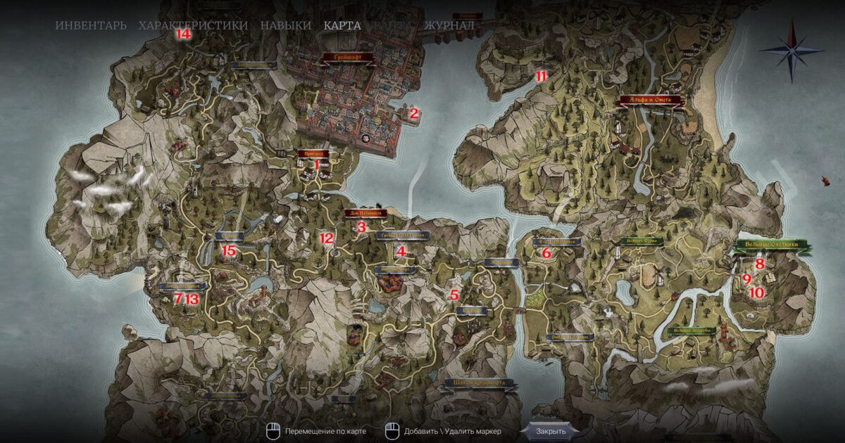 Неизученные таланты отмечены серым замком без возможности узнать их название, что на первых порах усложняет поиск нужного мастера. В гайде покажем все ветки развития картографа и расположение персонажей, необходимых для разблокировки умений.