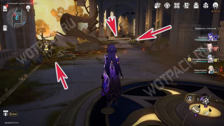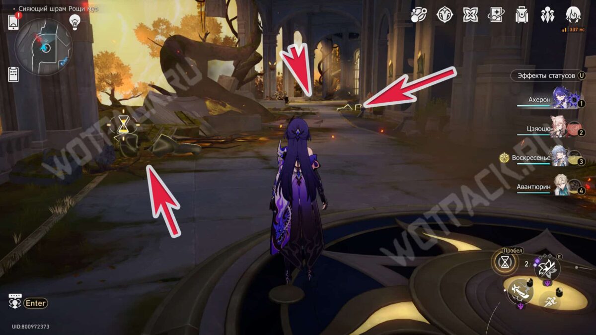 У любых вертикальных лопастей в локации можно открыть сразу два секретных трофея. Для получения одного необходимо остановить вращение, разбив сосуд времени, а для другого — успеть пройти, пока лопасти находятся в движении. Помочь с последним могут техники лучницы Юйкун, генерала Фэйсяо или охотницы Светлячка.