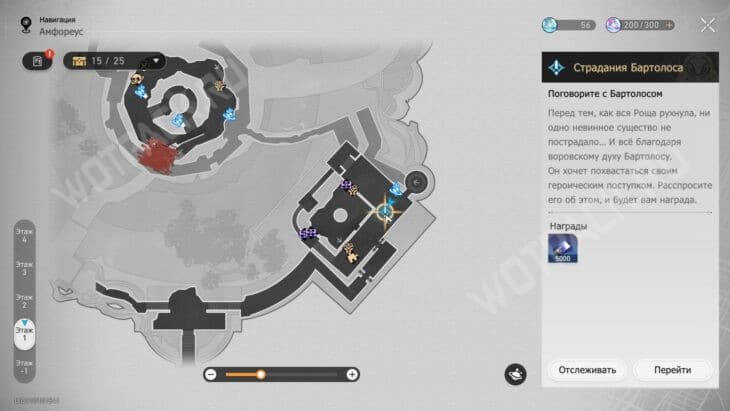 Сюжетные задания Освоения Амфореуса являются основной линией, обязательной к прохождению не только для понимания главной истории, но и для получения доступа к различным локациям. По мере продвижения по сюжету откроется возможность взять новые миссии приключений, получить доступ к головоломкам и открыть точки для фарма ресурсов. В основных сюжетных квестах затрагивается история «Вечной земли» и важные для лора события, позволяющие узнать больше о месте остановки Безымянных.
