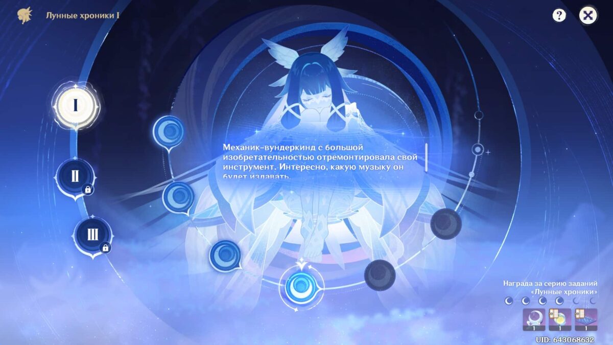 - Условия: завершён квест Архонтов «Приближение новой звезды» и закончена миссия «Не счесть историй в разных землях».