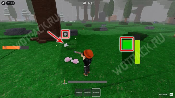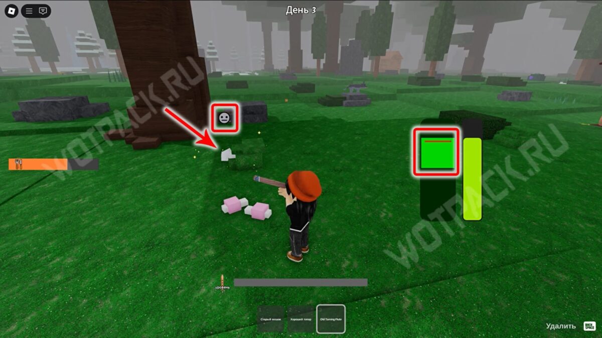 - Днем добывайте дерево, металл и еду, в сумерках не отходите от лагеря.
