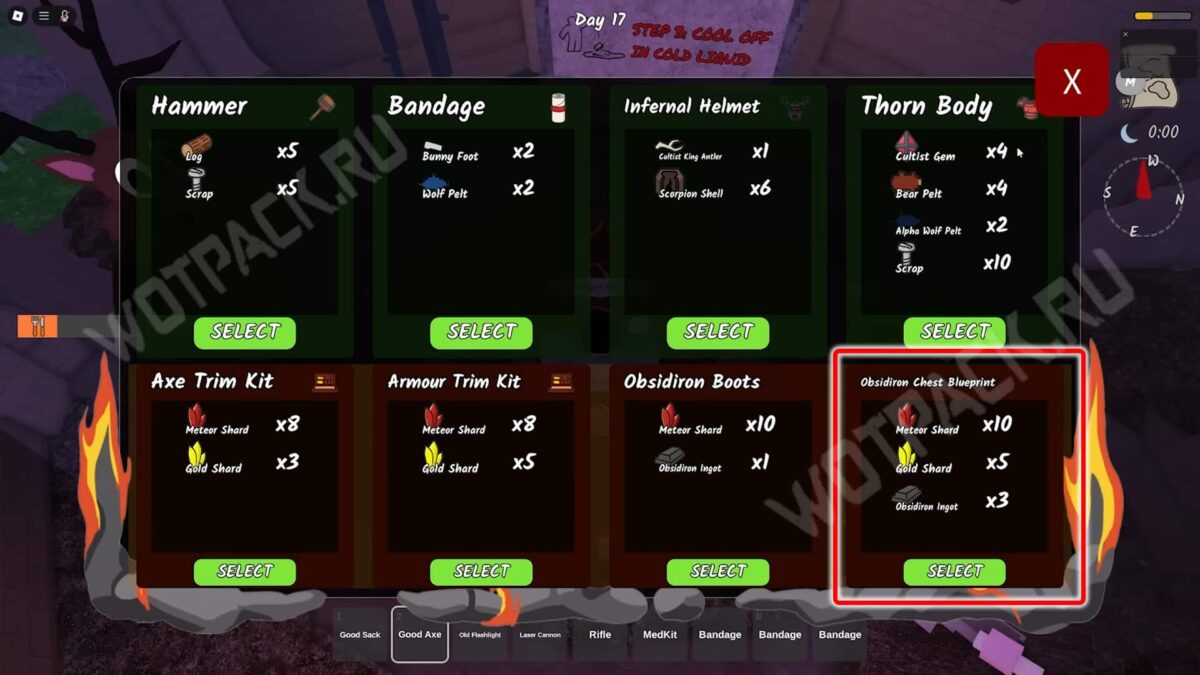 Выложите все необходимые ресурсы для крафта на наковальню, подойдите к верстаку и нажмите кнопку «Создать предмет». Возьмите чертеж обсидианового сундука, разместите объект на безопасной территории и откройте его.