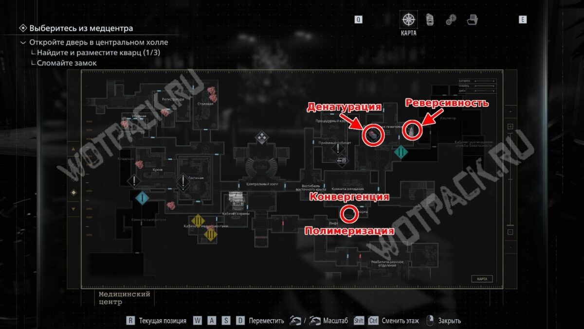 - Полимеризация — только на «Безумии» в каморке зала ожидания. Активируйте три узла в центре.