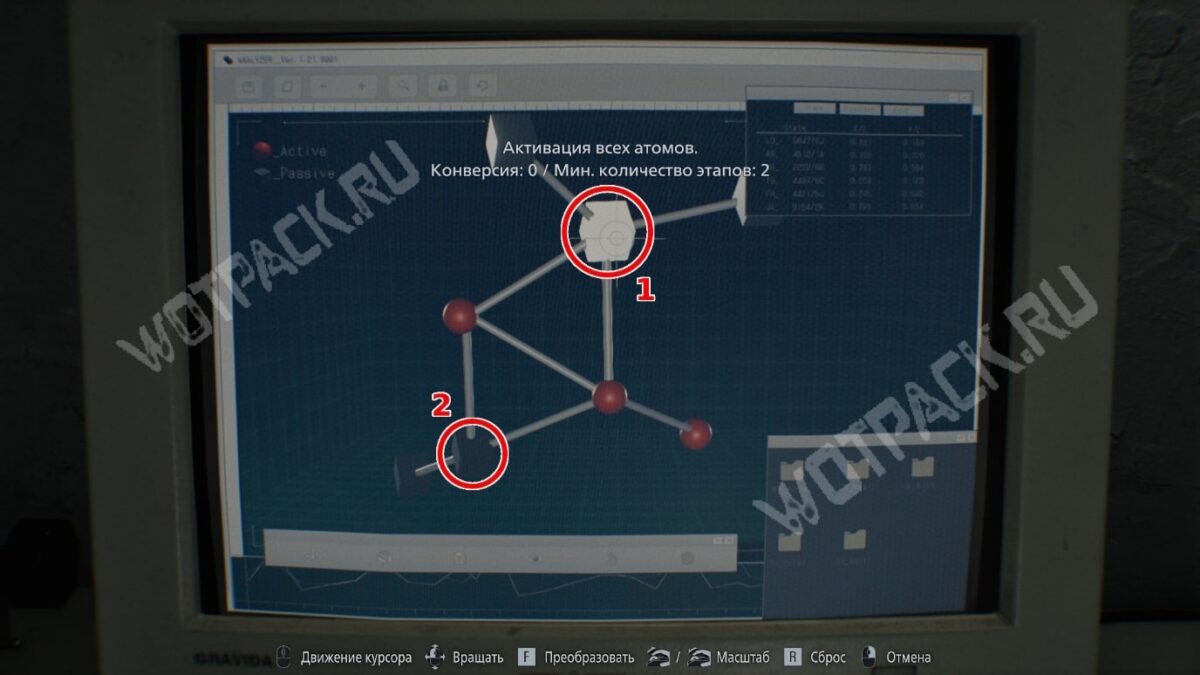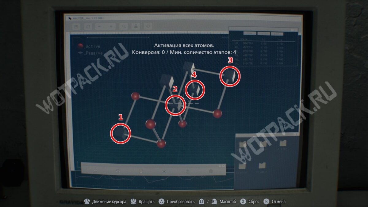 - Реверсивность — в закрытой подсобке лаборатории. Активируйте по порядку три центральных атома, последним — дальний справа.
