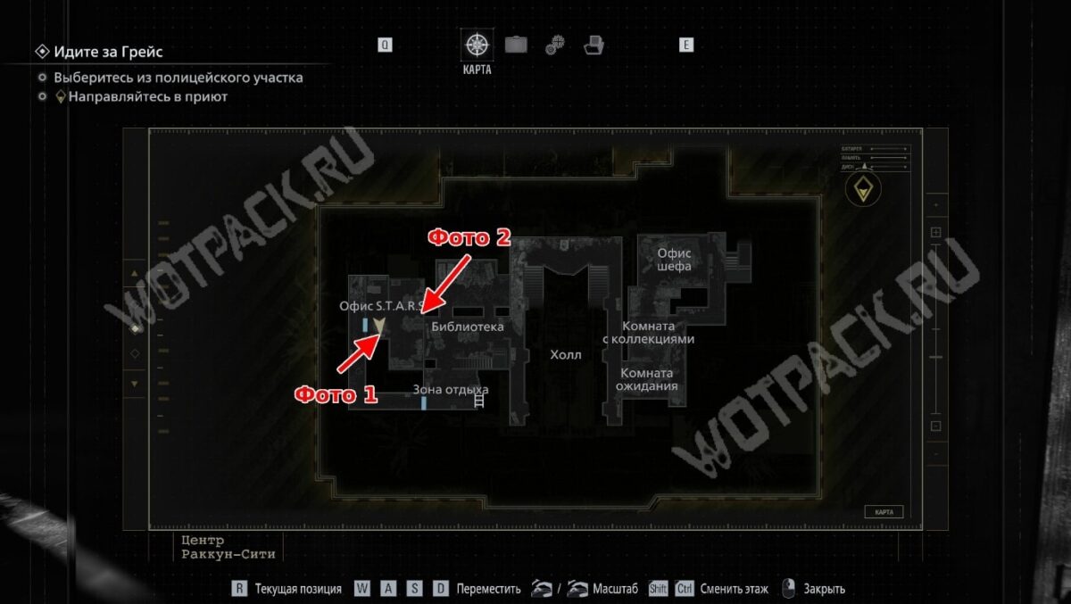 В полиции Раккун-Сити после побега от тирана есть возможность заглянуть в офис S.T.A.R.S. Один из членов элитного отряда ещё до инцидента оставил здесь пару фотографий с подсказками.