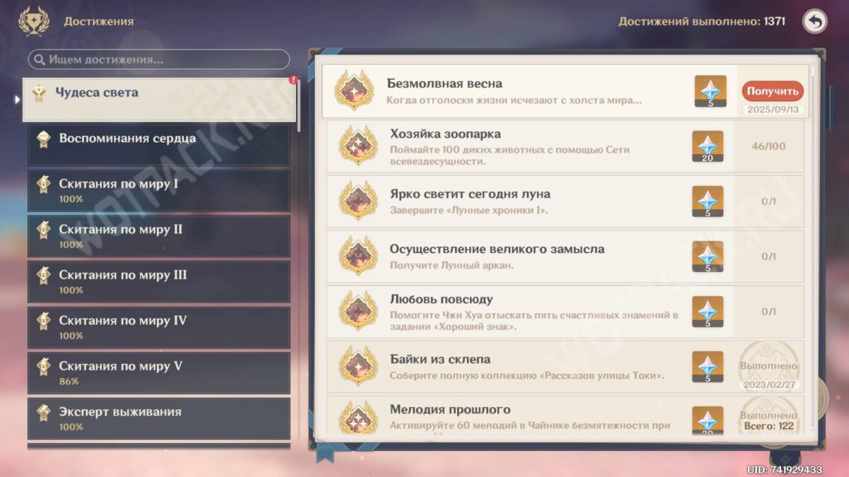 Завершите миссию, чтобы выполнить «Когда отголоски жизни исчезают с холста мира…» и открыть ачивку «Безмолвная весна» из раздела «Чудеса света». За трофей получите 5 примогемов в награду.