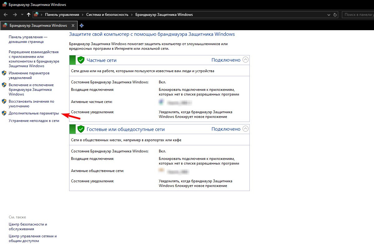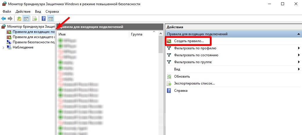 Далее потребуется выключить защиту Windows. В окне «Пуск» впишите «Брандмауэр», после чего перейдите в настройки защитника. Кликните «Дополнительные параметры», после чего на верхнюю строку «Правила для входящих подключений». В правой части экрана нажмите на «Создать правило».