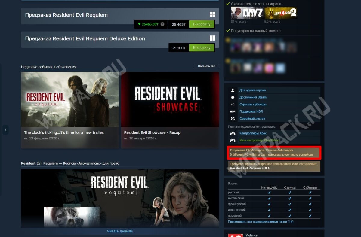 Графика и проработанный мир заметно повысили системные требования, а наличие Denuvo лишь ухудшает оптимизацию. По этой и многим другим причинам фанаты горячо ожидают взлом нашумевшей Resident Evil Requiem, которая защищена DRM Anti-Tamper.