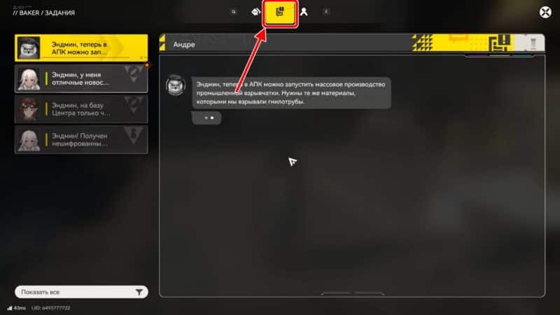Если пропустили сообщение от совы, откройте его вручную через меню сообщений. Оно вызывается через иконку справа от мини-карты или горячей клавишей «H» на клавиатуре. Чтобы посмотреть деловые переписки, перейдите во вкладку «Задания».