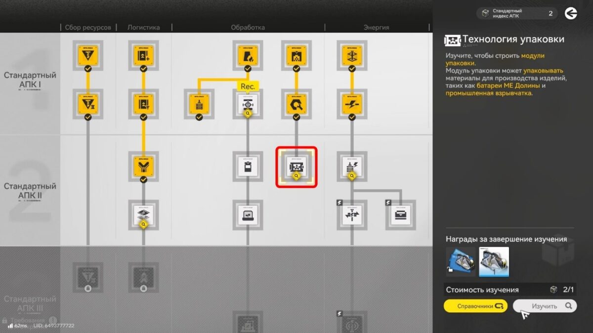 Получите стандартный индекс АПК, посетив любой протокольный регистратор Долины 4 и потратьте его на открытие технологии упаковки в производственном плане.