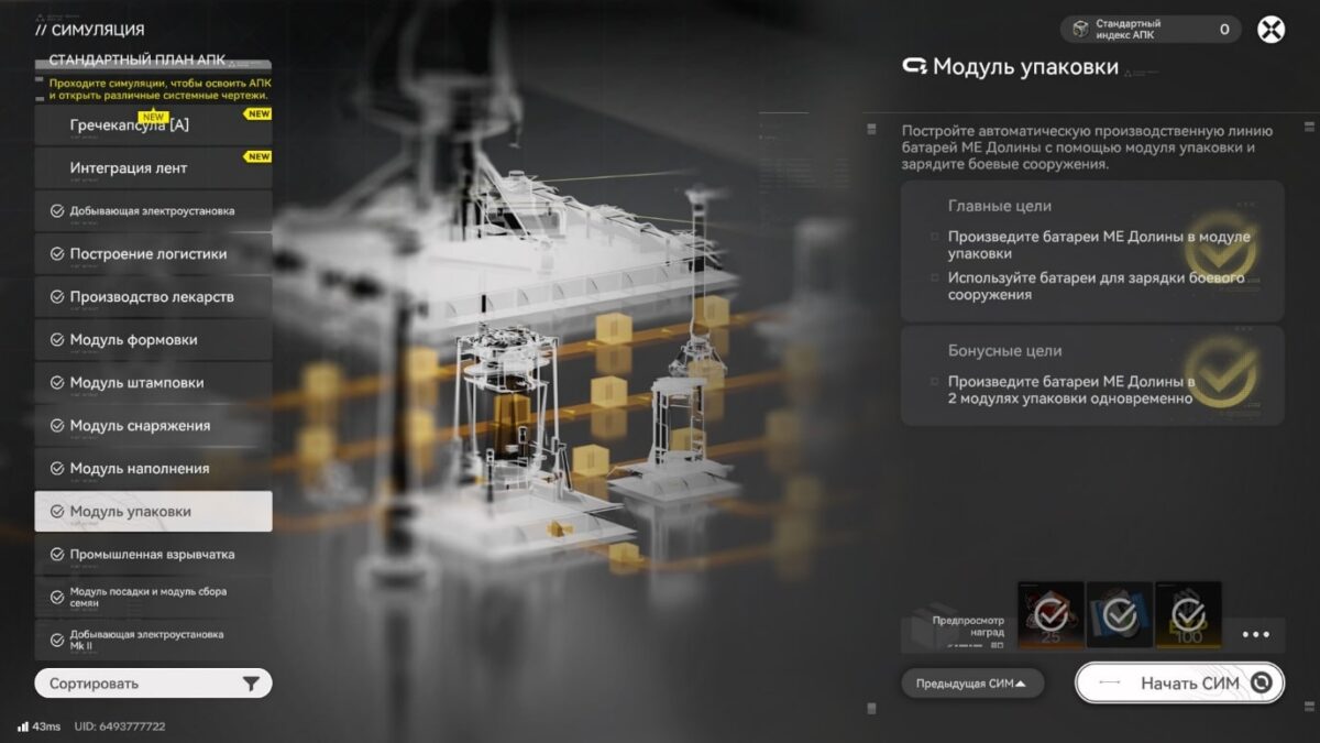 Проходить обучение не обязательно, но, если выполните все цели симуляции модуля упаковки, получите бонусные ороберилы за прохождение.