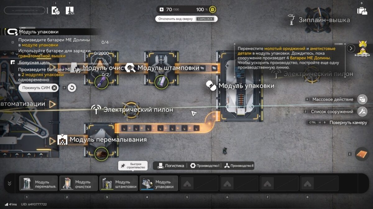 Если хотите выполнить бонусную цель симуляции, произведите батареи МЕ Долины в 2 модулях упаковки одновременно. Для этого с другой стороны ПБА разместите такую же схему.