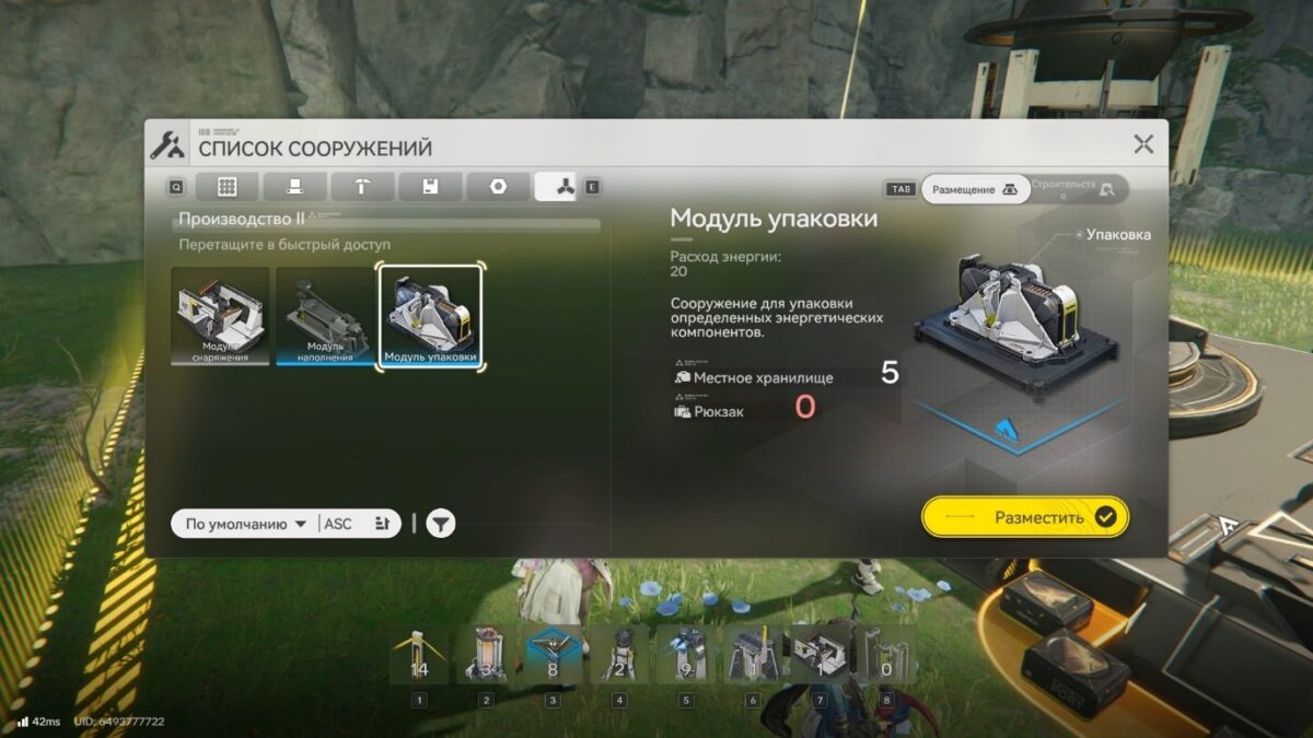Отправляйтесь в лагерь беженцев и постройте изученный упаковщик рядом с суб-ПБА. Для этого откройте список сооружений кнопкой в правом нижнем углу экрана и выберите нужный аппарат в категории «Производство II».