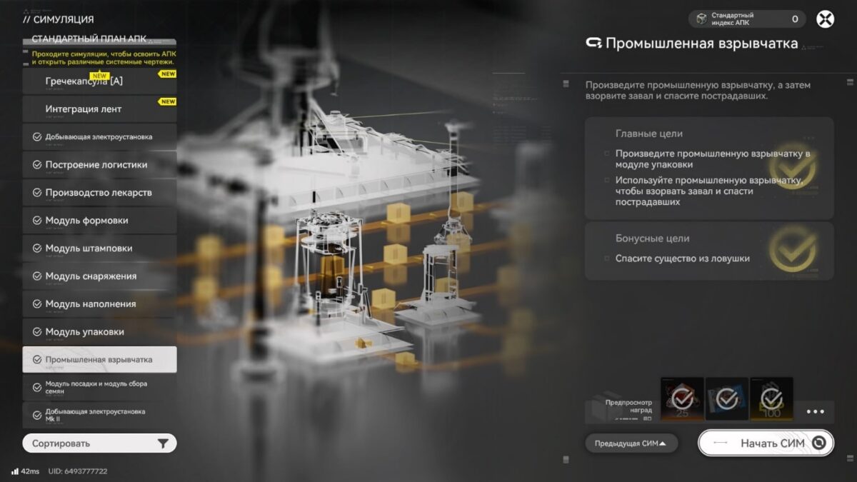 При желании предварительно пройдите обучение и выполните все цели симуляции промышленной взрывчатки.