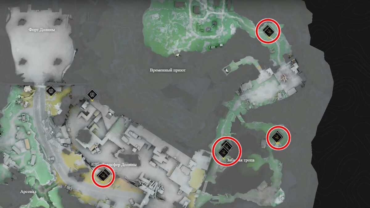 В окрестностях лагеря беженцев основным местом сбора является Забытая тропа. Дополнительно можно поискать у Трансфера Долины.
