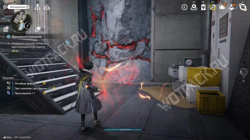 Попытайтесь открыть главные ворота, проходя через подсобные помещения и взрывая коробки, блокирующие двери. Прохождение через предприятие позволяет также получить доступ к месторождениям ориджиния и кальценикса.