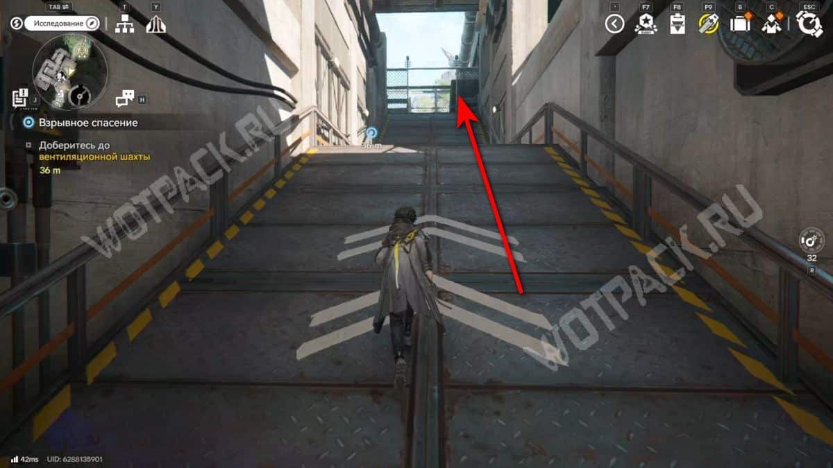 Через середину вентиляции выйдите в коридор на противоположной стороне. Не забудьте по пути взять сундук.