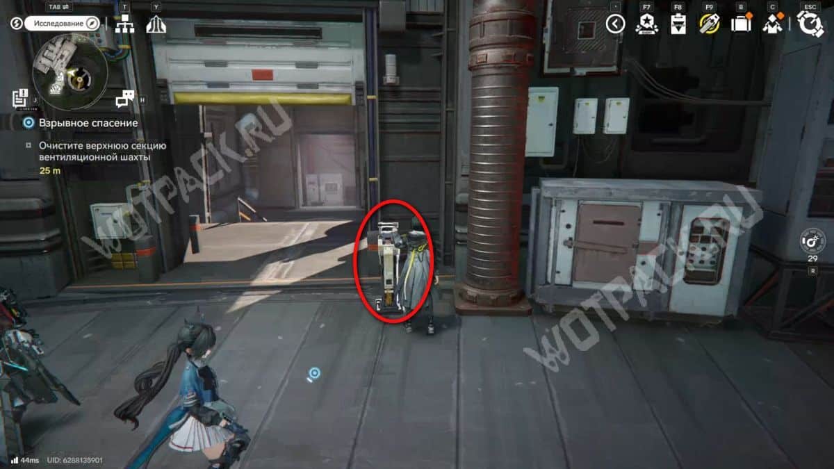 Для старта квеста отправляйтесь к точке ТП к югу от Центра исследования ориджиния. Недалеко от нее поговорите с девушкой, стоящей около запертых ворот. Перед выполнением миссии рекомендуем скрафтить на АПК промышленную взрывчатку, так как она в большом количестве понадобится внутри завода.
