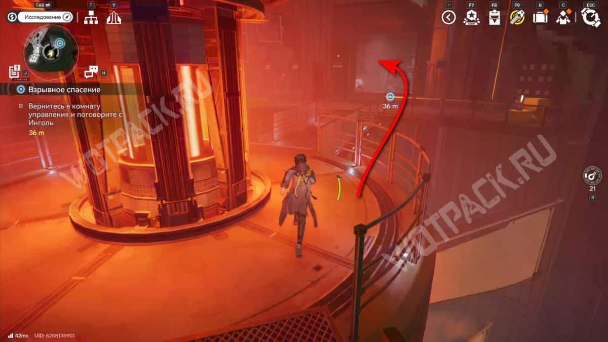Инголь осмотрит устройство и скажет, что нужно решить проблему в реакторе. По пологому коридору поднимитесь наверх — там проход закрыт.