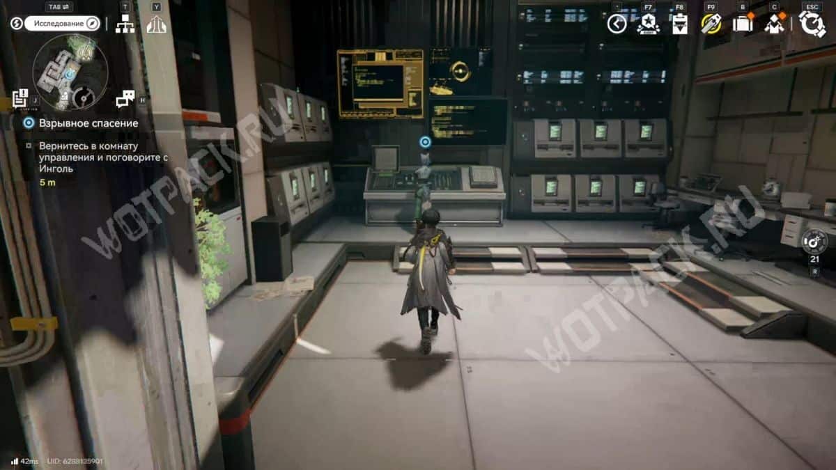 Далее поверните налево и поговорите с Инголь, стоящей у пульта управления.