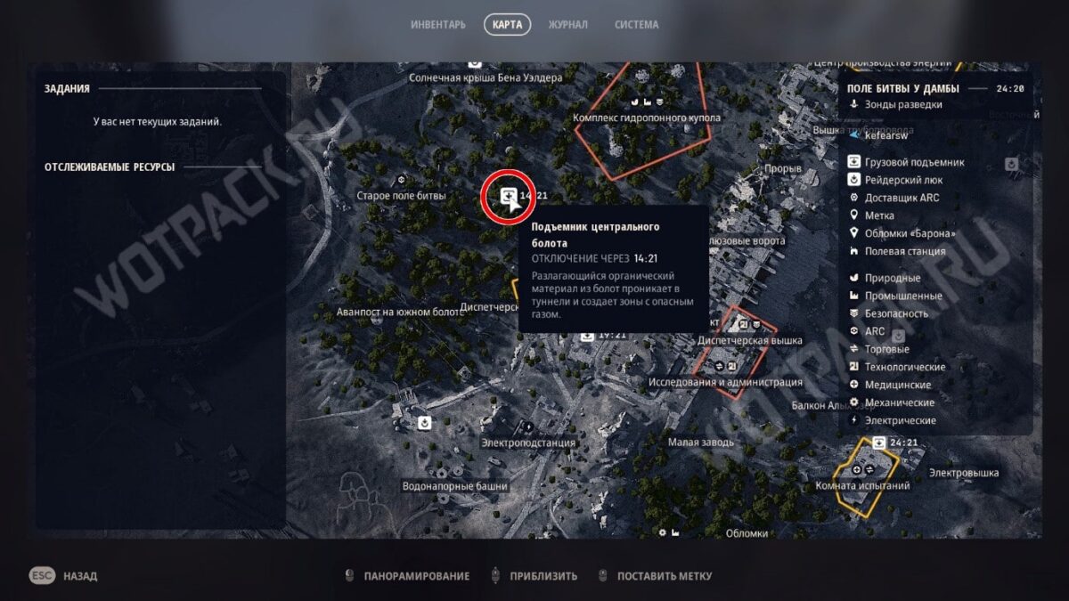 - Поле битвы у дамбы — закрытая комната в здании диспетчерской водоочистителя.