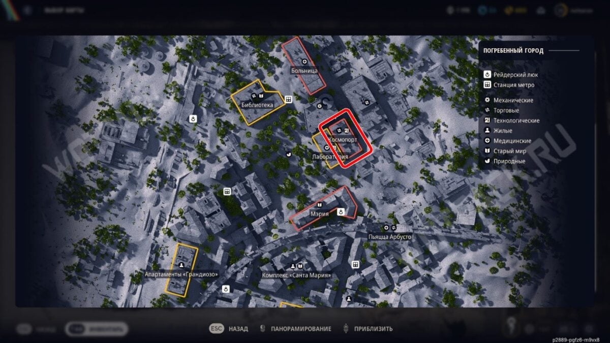 - Погребенный город — забаррикадированная часть шестого этажа здания космических полетов.