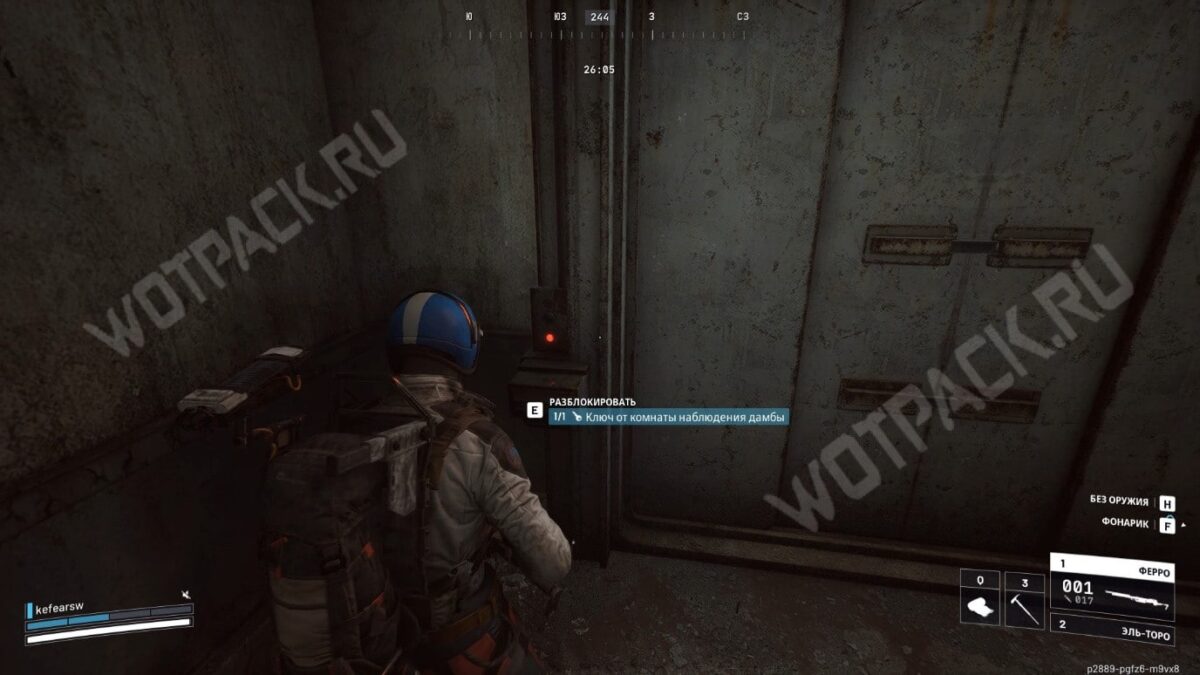 Нужная запертая дверь расположена на втором этаже диспетчерской водоочистителя. Ориентируясь по карте, проберитесь по коридорам в южную часть здания и в тупике ищите вход, подсвеченный красной лампой.