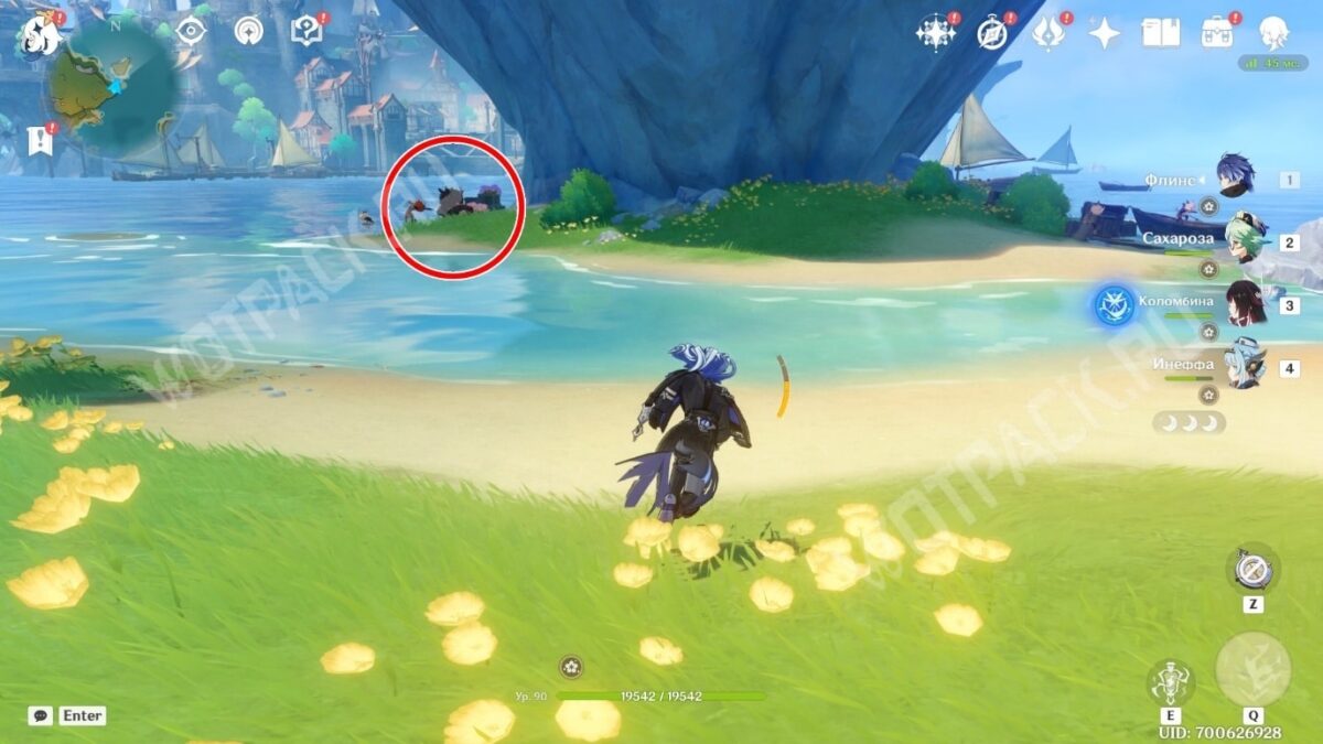 Чтобы забрать предмет, отправляйтесь к небольшому островку у побережья к северо-востоку от Мельничной Пристани. Груз был похищен чудовищами, которые охраняют его на западной стороне скалы. Победите хиличурлов, после чего осмотрите деревянный короб с цветами.