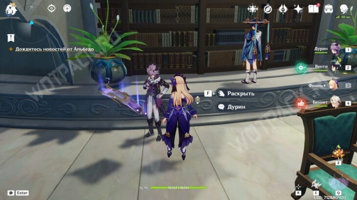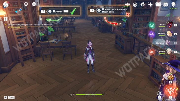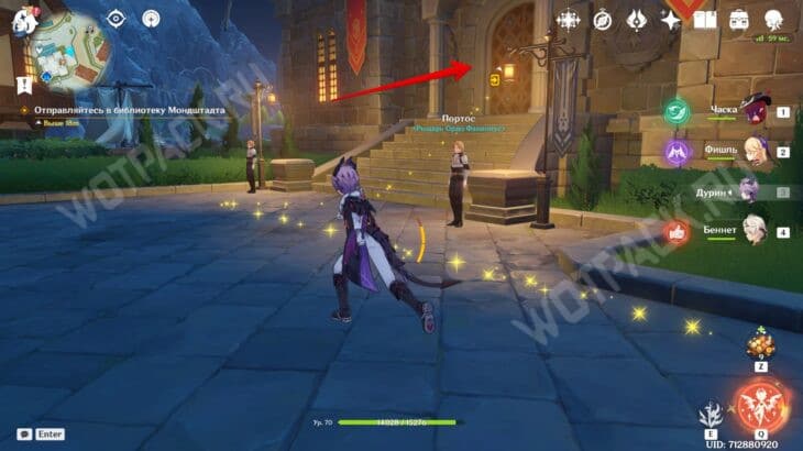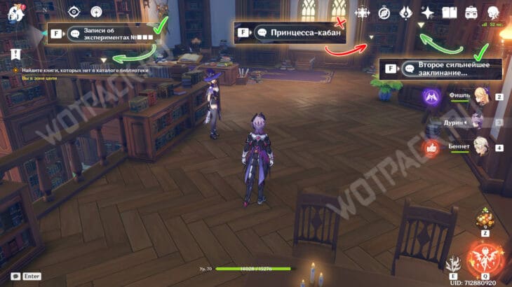 В поисках семян истории отправляйтесь в библиотеку Мондштадта, расположенную на первом этаже здания Ордо Фавониус. Зайдя внутрь, поверните в дверь справа, после чего окажетесь пойманными Лизой Минчи.