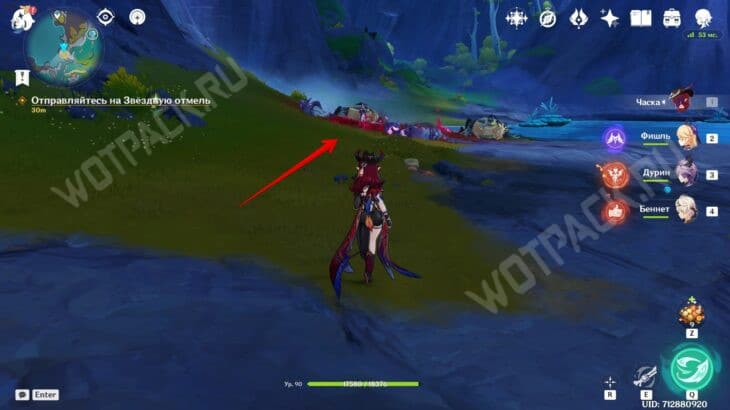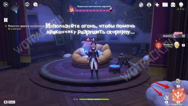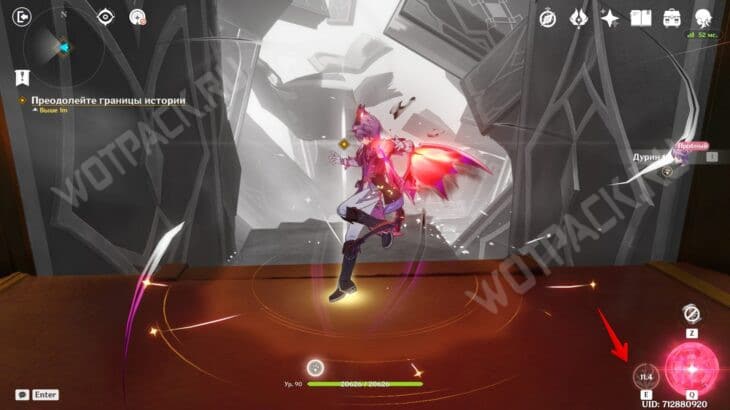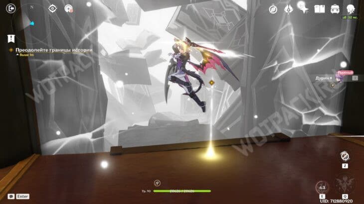 - Чтобы зарядить перо, атакуйте его элементальным навыком или взрывом стихии — оно собьёт половину здоровья со шкалы босса.