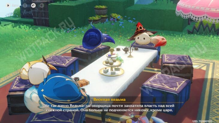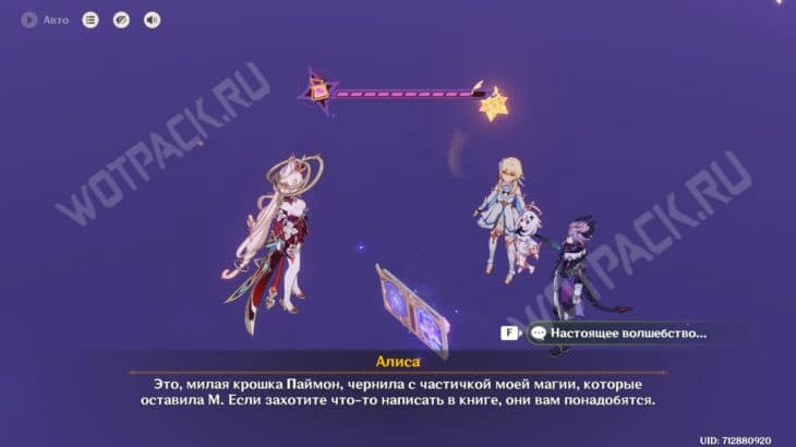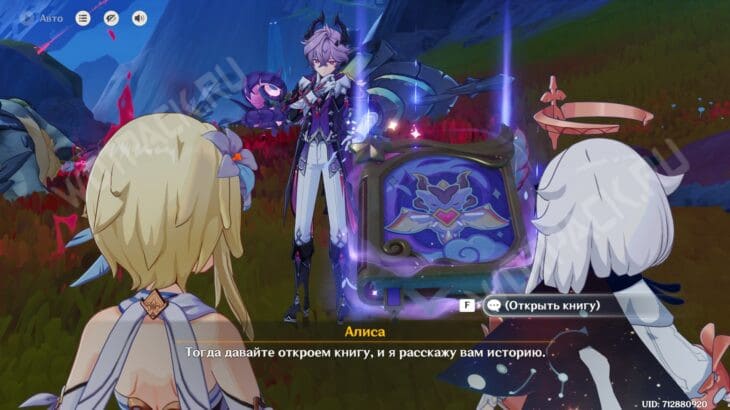 Пока не совершите телепортацию в другую точку, сможете поговорить с Алисой и Венти. Первая объяснит, что Путешественнику передали экземпляр произведения, а бард поделится впечатлением о счастливом конце.