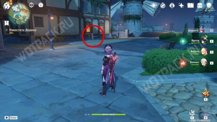 Вернитесь в Мондштадт вместе с Дурином туда же, где группа играла в Священный призыв семерых. По неизвестным причинам Бездна начнёт вырываться из мальчика, из-за чего он потеряет сознание.