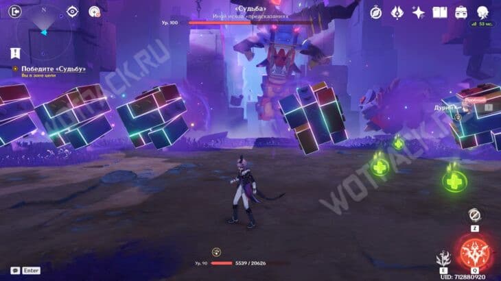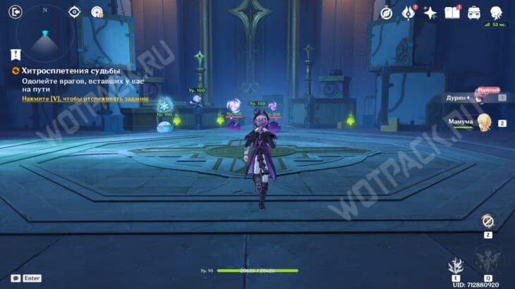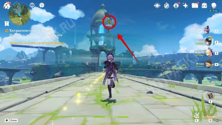 - Уничтожьте Электро мага Бездны в окружении двух обычных хиличурлов. В процессе уклоняйтесь от размашистых ударов лап «Судьбы».