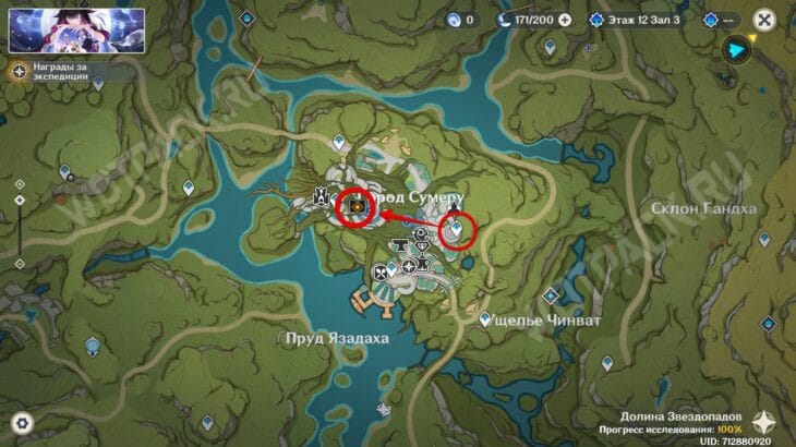 Переместитесь к телепорту у точки репутации Сумеру и направляйтесь Дом даэны, расположенный в академии.