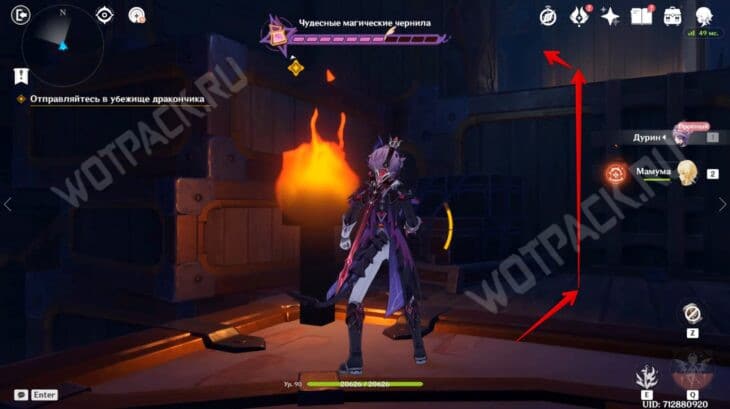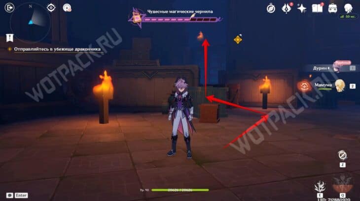 - Снова напитайте перо Пиро элементом — оно полетит в босса и добьёт его.