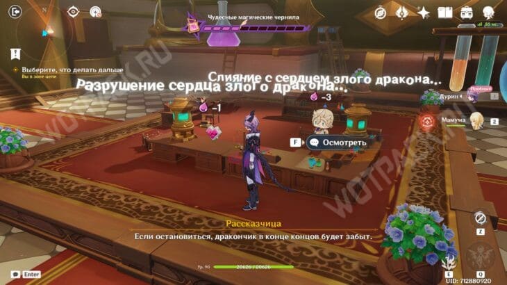 - Слияние с сердцем злого дракона — альтернативное правильное продолжение, которое на самом деле не требует 3 ед. чернил.