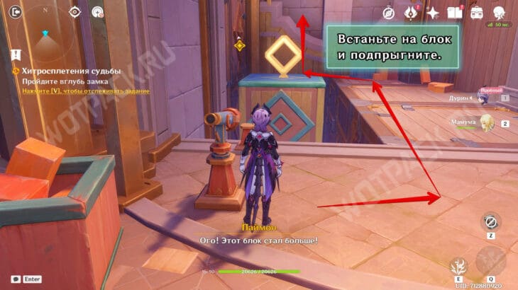 - Пройдите вглубь замка, встав на гигантский блок из Симуланки и подпрыгнув на нём.