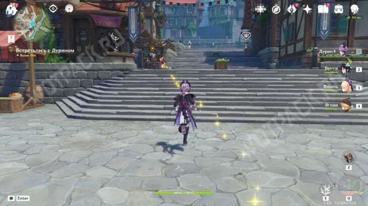 Если захотите, то можете вернуться в волшебный мир возле места ожидания юноши. В первый день он останется в Мондштадте.