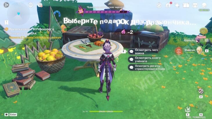 Суть квеста заключается в исследовании магической книги и совершении выборов, которые позже нельзя изменить, поэтом разберем каждый из них. Объясним, чем украсить колыбель и где найти Венти для разгадки подсказки.