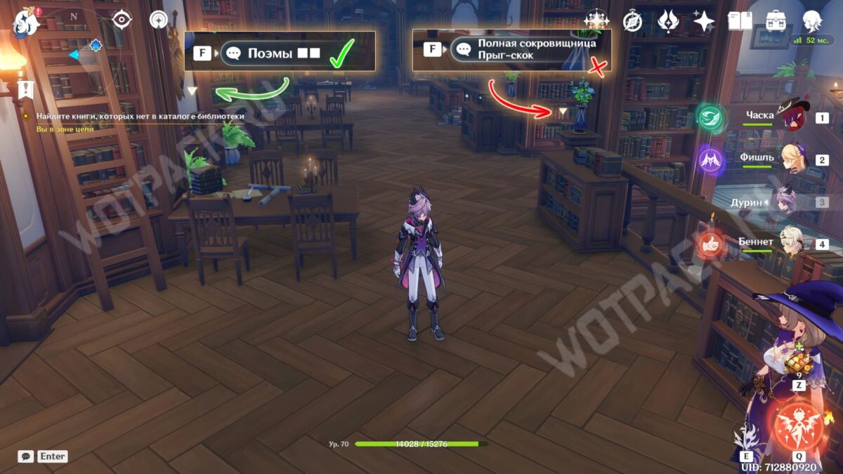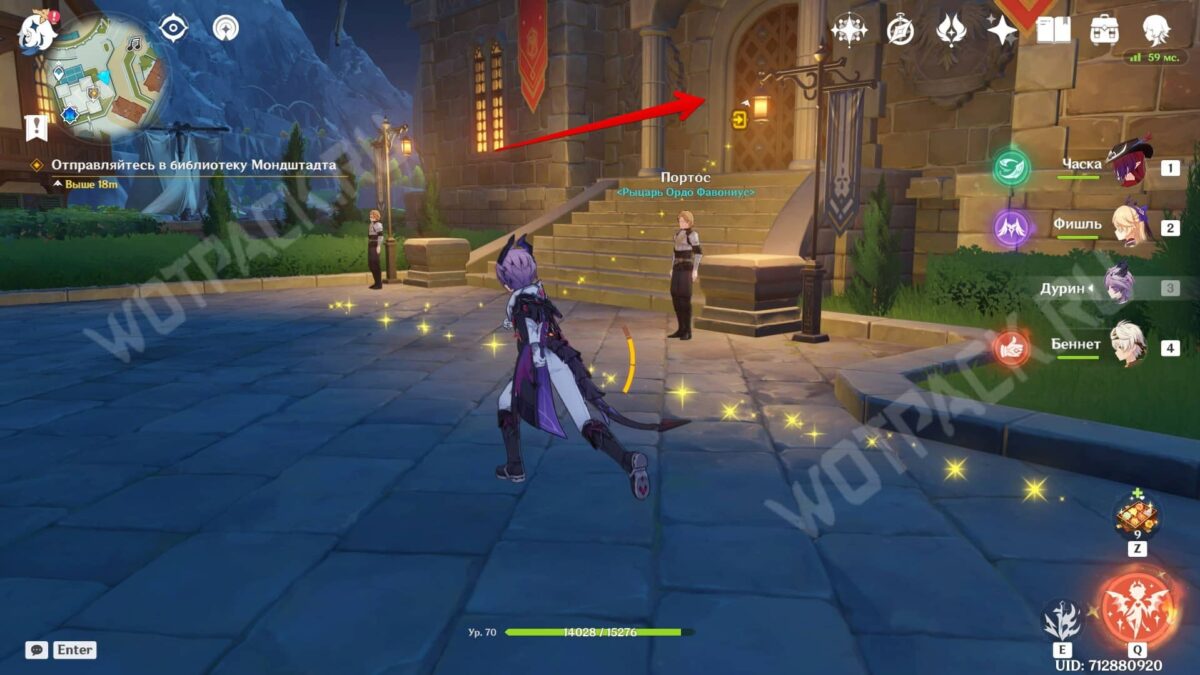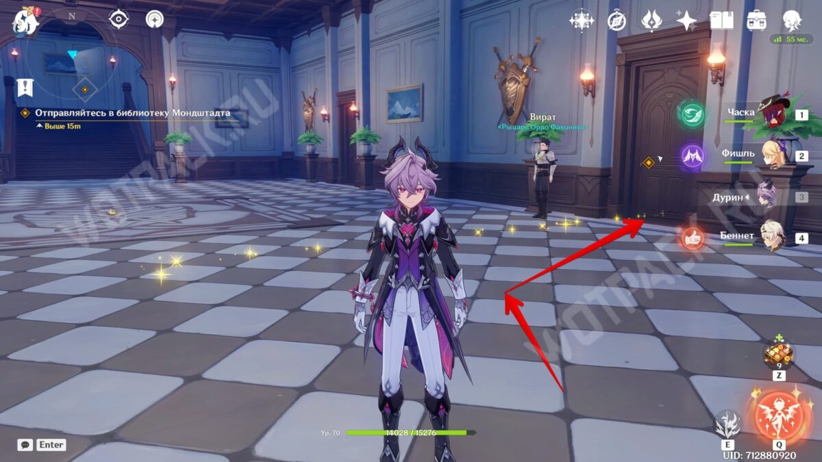 В поисках семян истории отправляйтесь в библиотеку Мондштадта, расположенную на первом этаже здания Ордо Фавониус. Зайдя внутрь, поверните в дверь справа, после чего окажетесь пойманными Лизой Минчи.