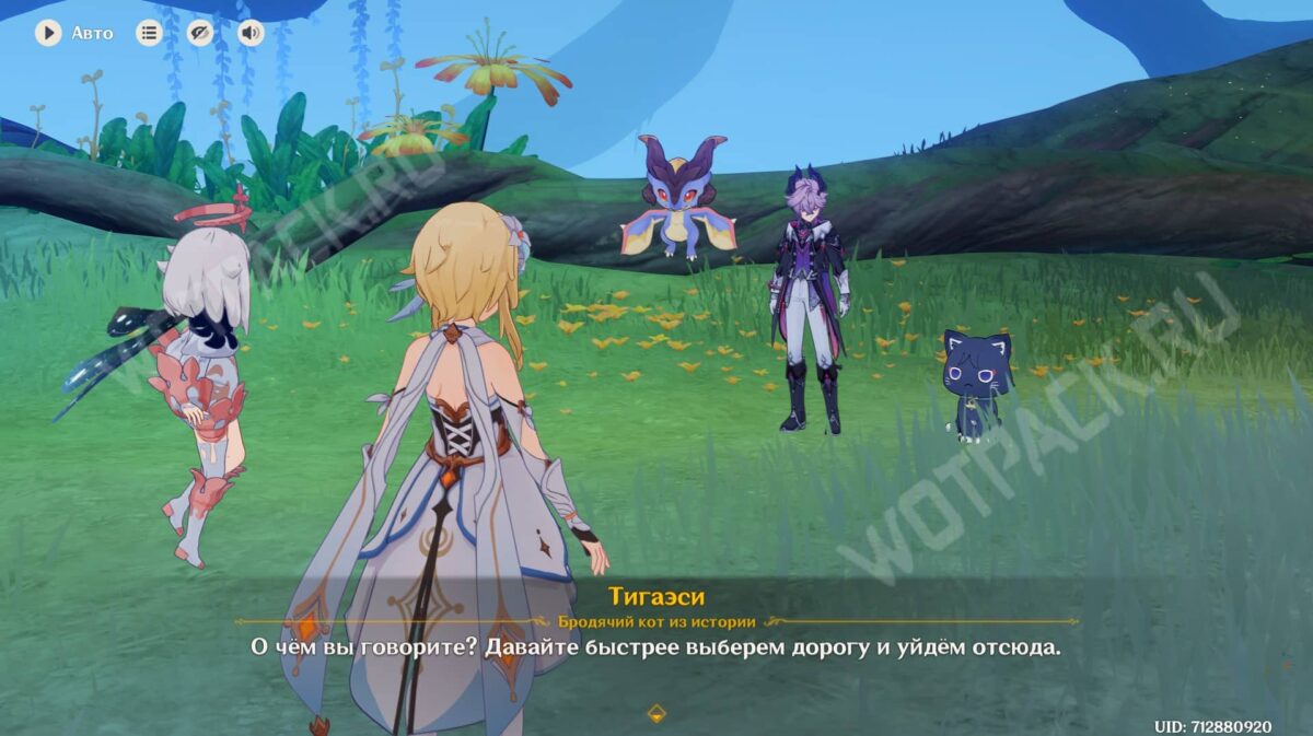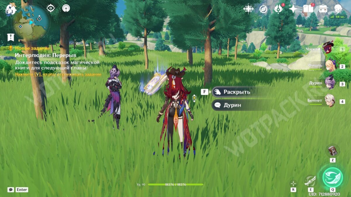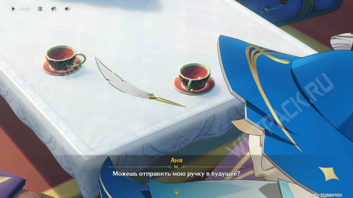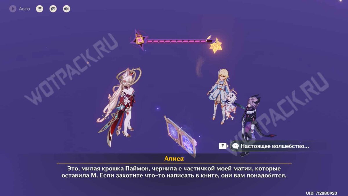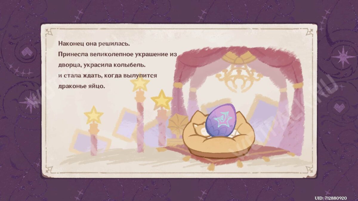 Пока не совершите телепортацию в другую точку, сможете поговорить с Алисой и Венти. Первая объяснит, что Путешественнику передали экземпляр произведения, а бард поделится впечатлением о счастливом конце.