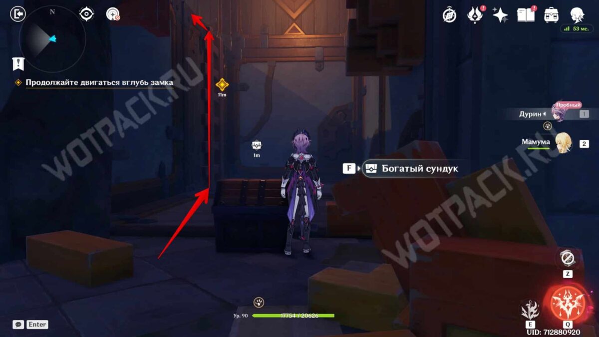 Продолжайте двигаться вглубь замка и перед подъёмом не забудьте забрать богатый сундук. В следующем пространстве потребуется найти два блок и проложить ими дорогу.