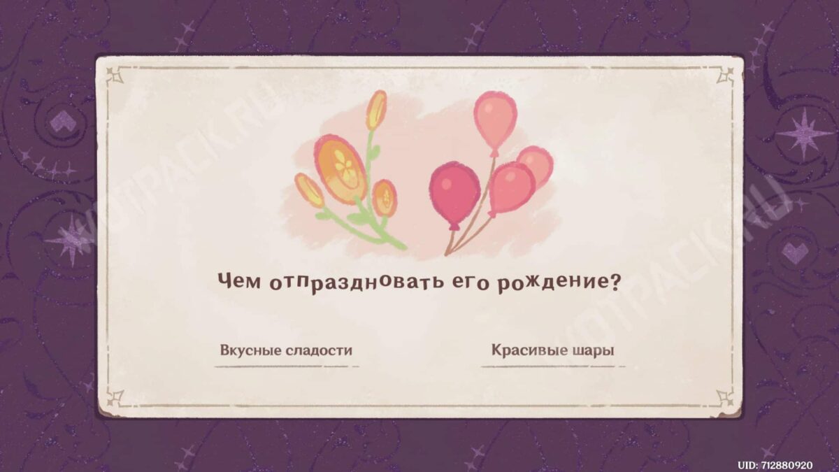 В честь такого важного события найдите подарки, лежащие на круглом столе в углу пространства, и подберите один из них на свой вкус. Это повлияет только на реплики и визуальную составляющую: