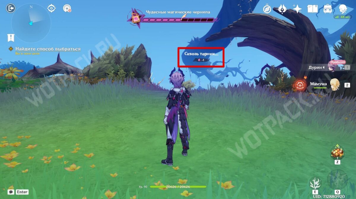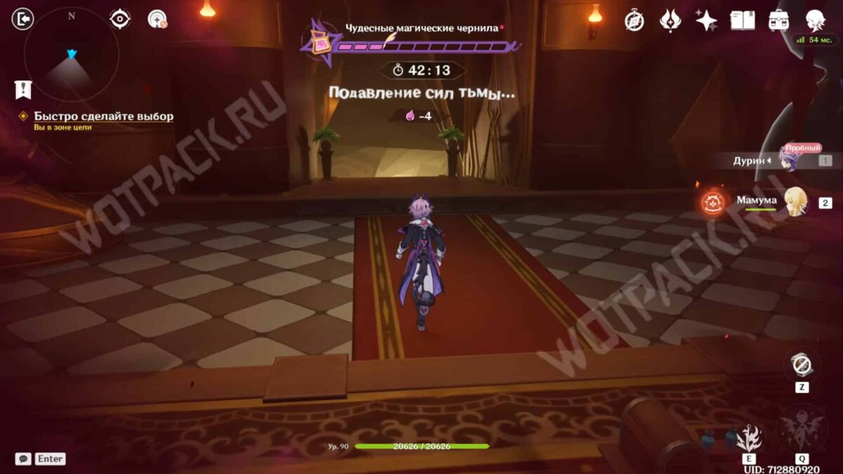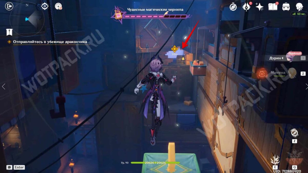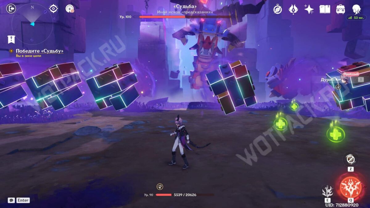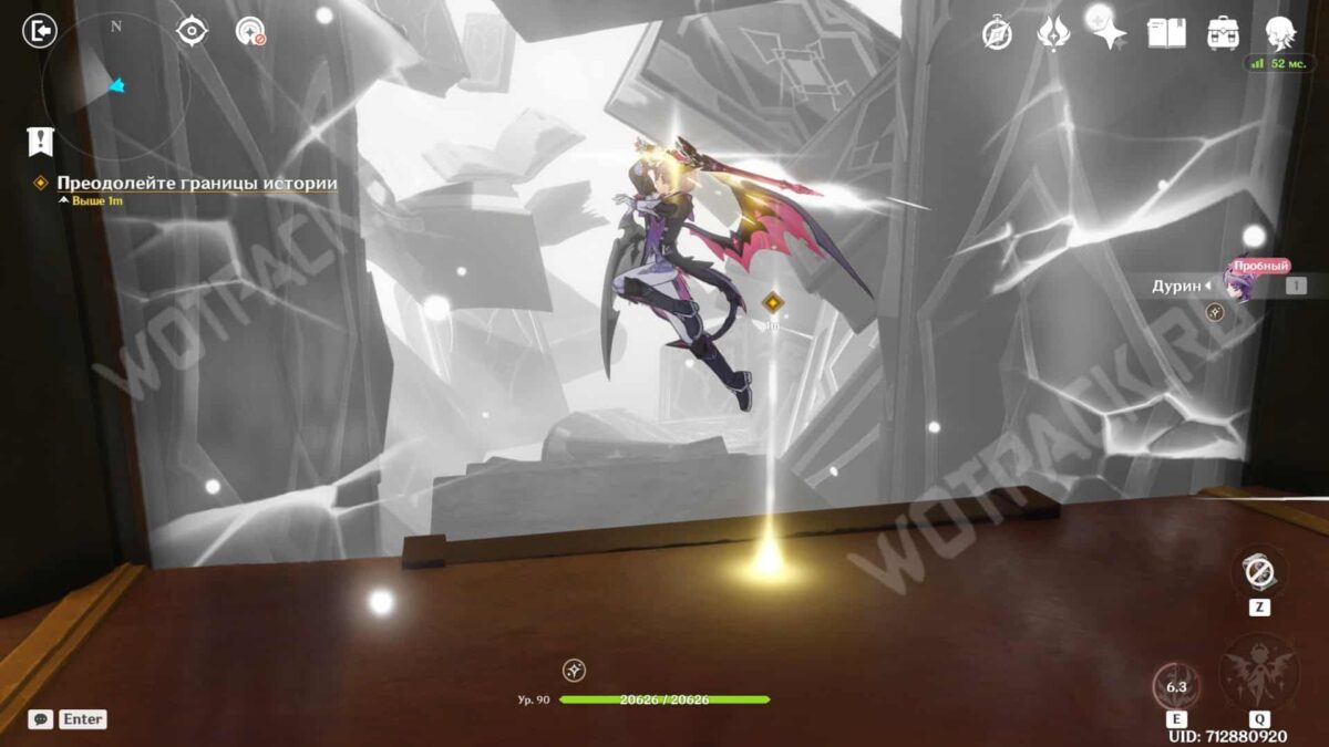 - Чтобы зарядить перо, атакуйте его элементальным навыком или взрывом стихии — оно собьёт половину здоровья со шкалы босса.