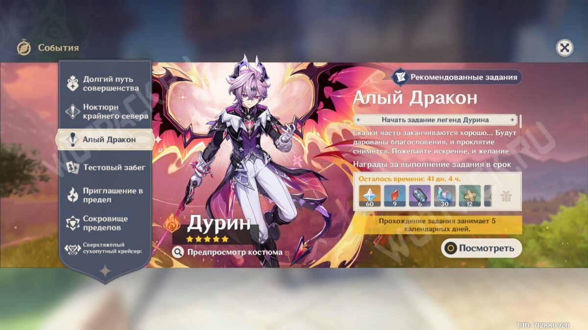 Задание легенд Дурина Алый дракон. Глава 1: Магия повествования принесет следующие вознаграждения в Геншин Импакт:
