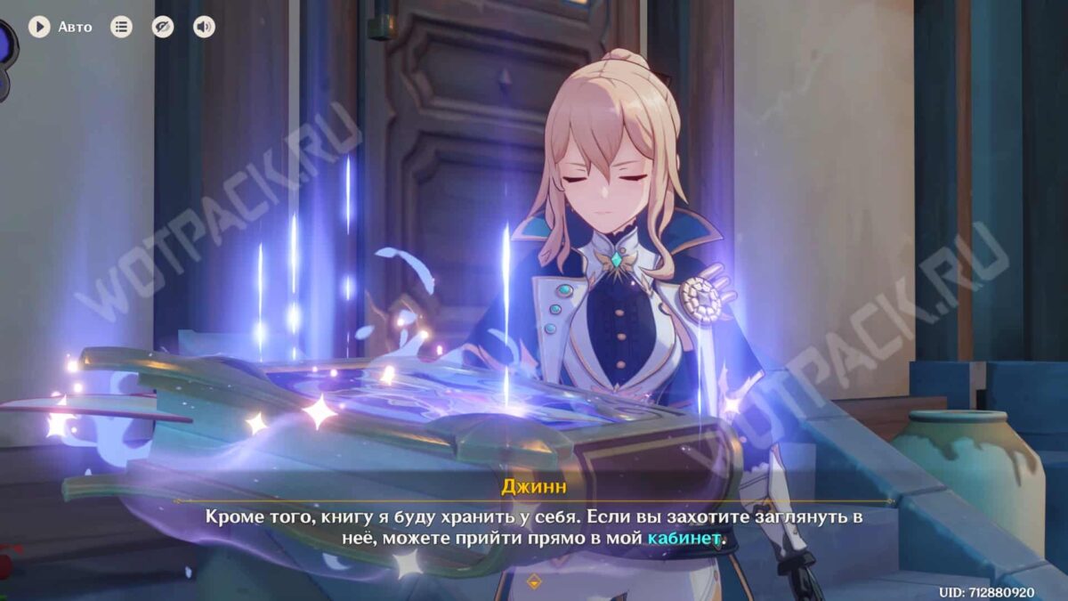 До следующего реального дня книгу найдёте в кабинете Джинн на первом этаже Ордо Фавониус. Зайдя в штаб, сразу же поверните налево, чтобы туда попасть.