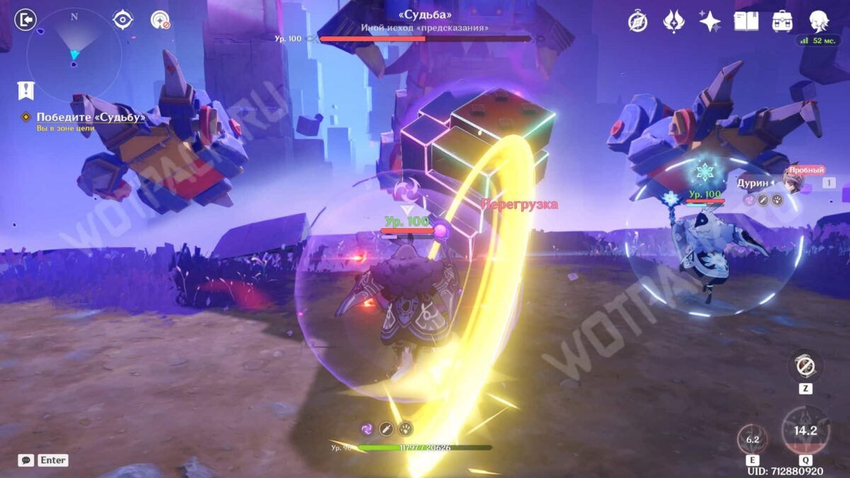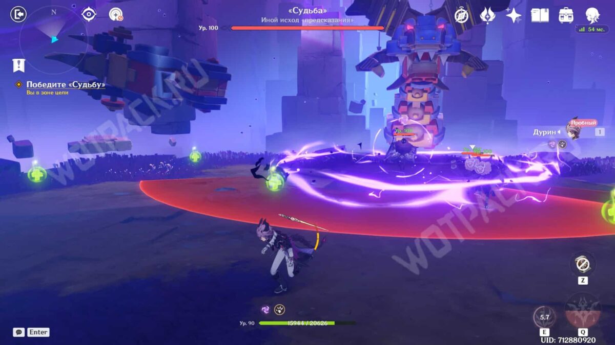 - Уничтожьте Электро мага Бездны в окружении двух обычных хиличурлов. В процессе уклоняйтесь от размашистых ударов лап «Судьбы».